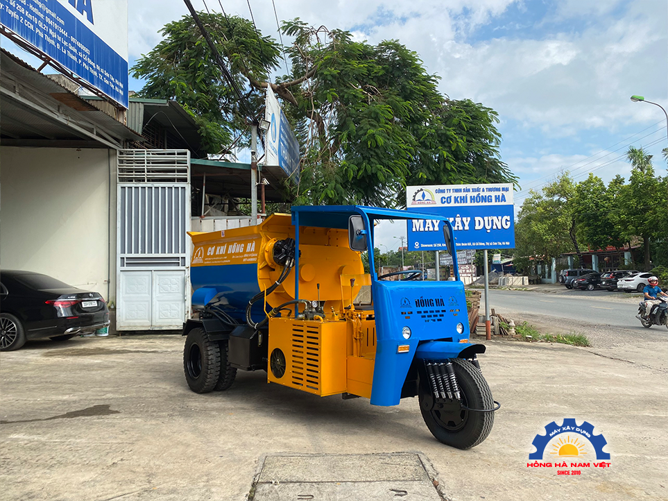 Máy trộn bê tông tự hành bồn ngang 12 bao 3 bánh với thiết kế nhỏ gọn, dễ dàng luồn lách các ngõ nhỏ phục vụ thi công bê tông dân dụng, phù hợp với khu vực đồng bằng. Bên cạnh sự cơ động, thiết kế bồn trộn cũng được tối ưu với cơ cấu trộn 2 trục nằm ngang tương đương với hệ thống cối trộn của trạm trộn bê tông thương phẩm, đảm bảo chất lượng bê tông cho chủ đầu tư.